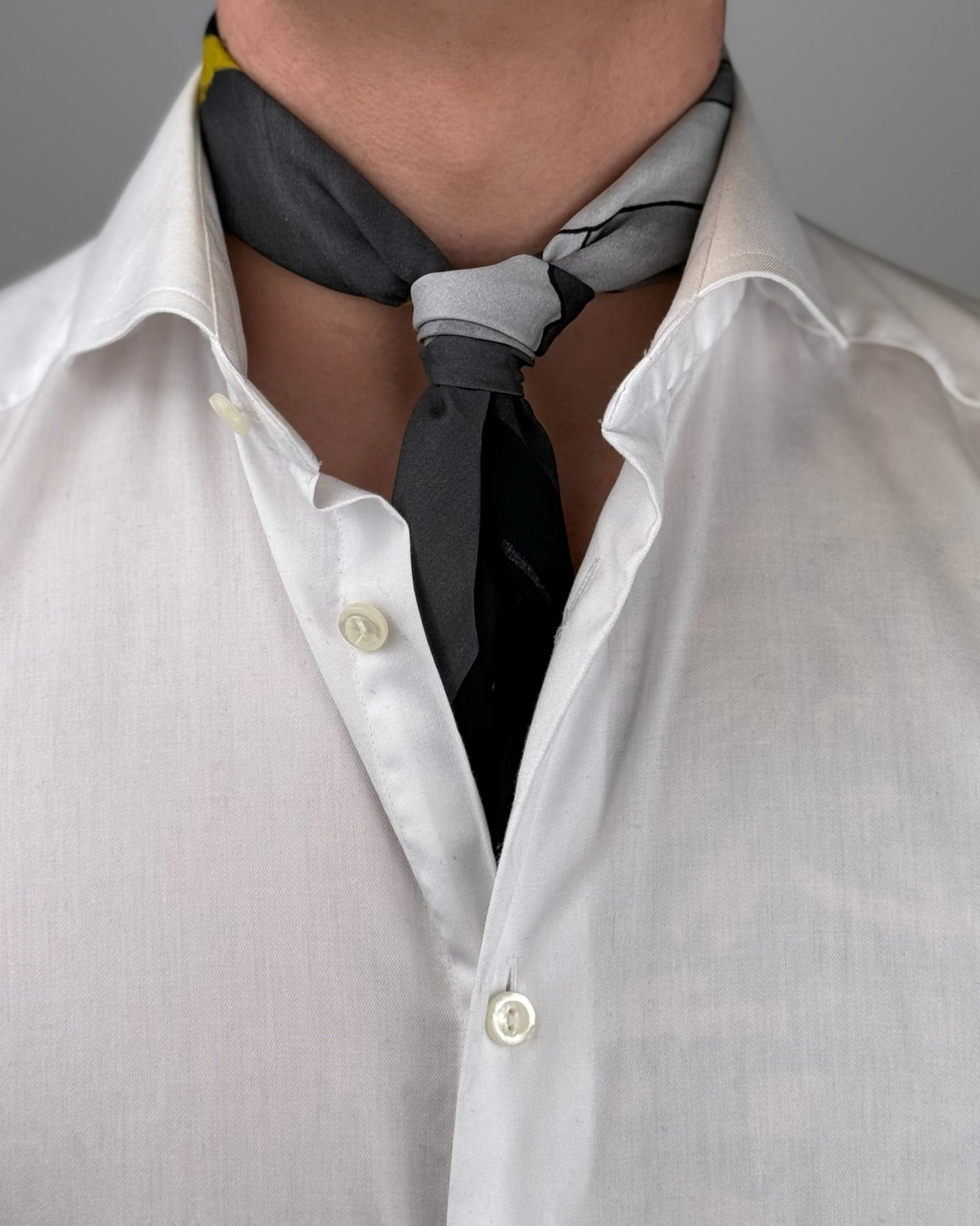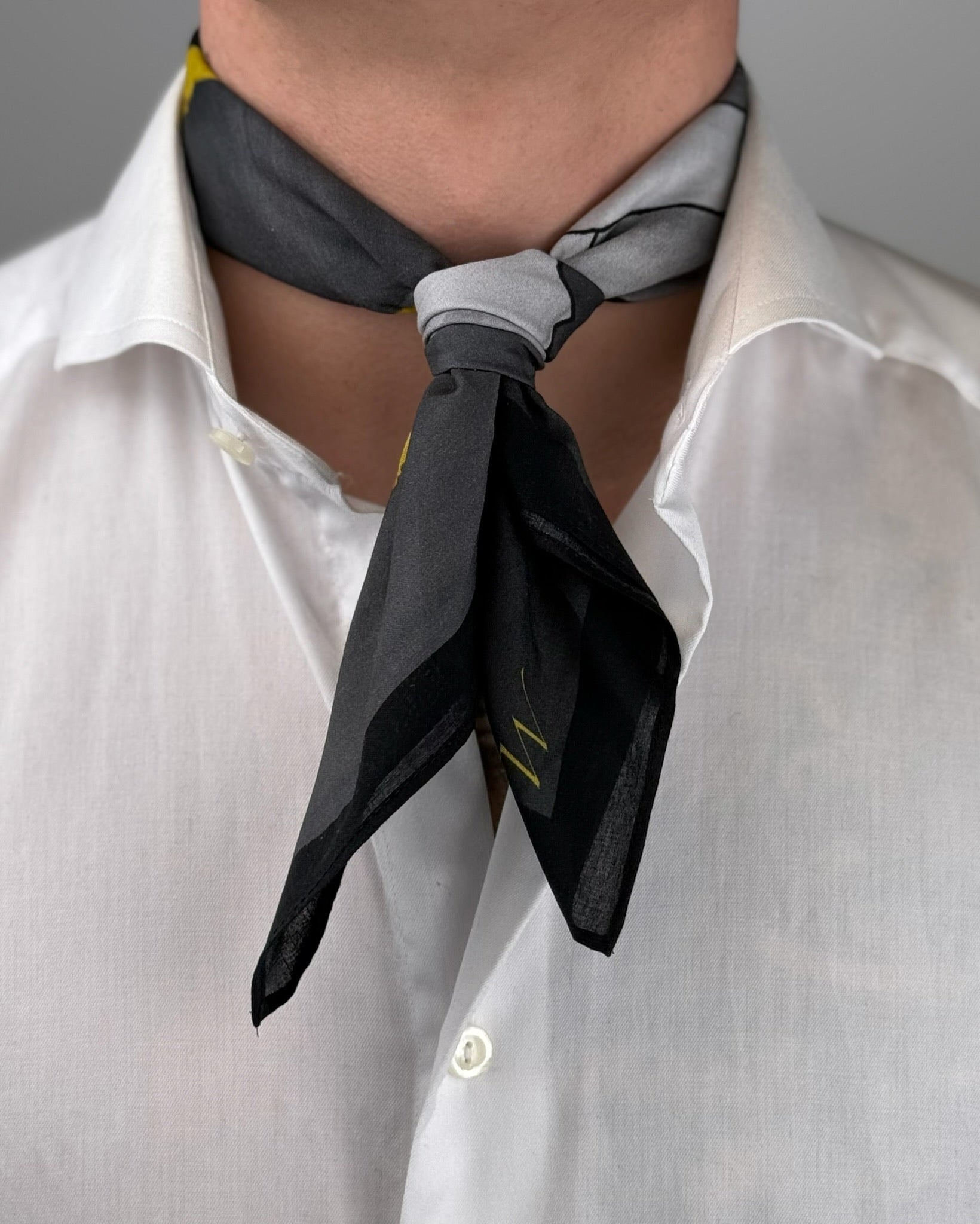 Alle våre silkeskjerf er 55 x 55 cm. De passer til det aller meste. De går fint rundt halsen, og kan gjerne brukes rundt vesker og lignende.