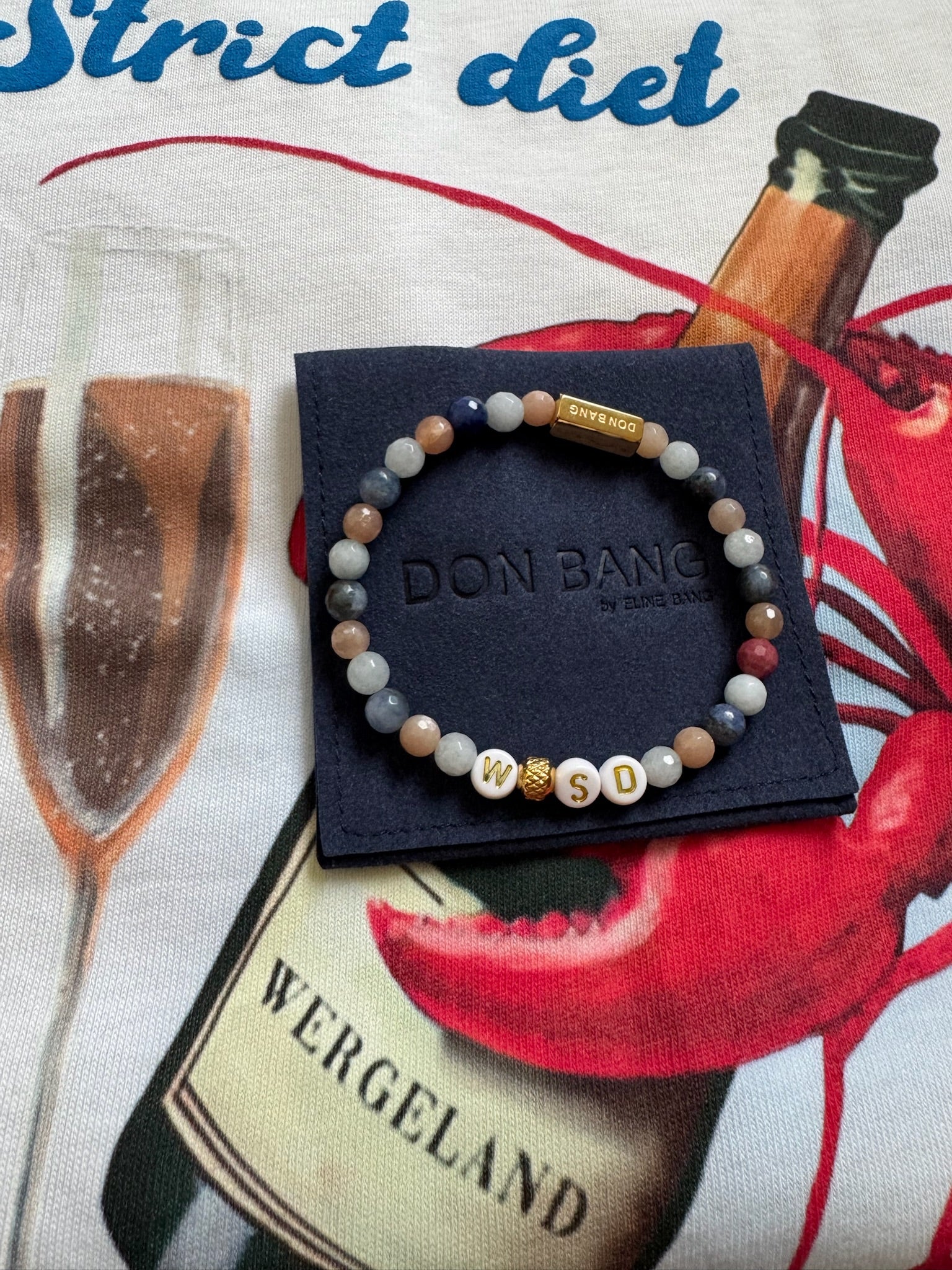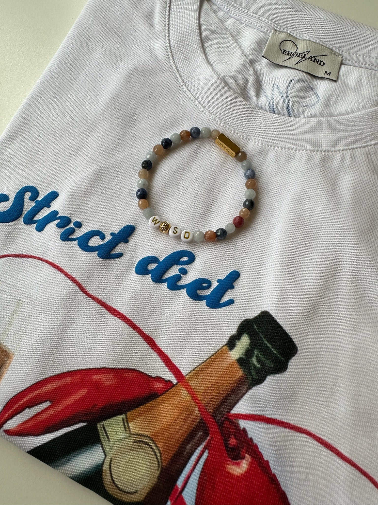 Utvalgte t-skjorter fra SS25-kolleksjonen leveres med håndlagde, matchende armbånd fra Don Bang – designet for å løfte helhetsinntrykket og tilføre en gjennomført detalj. Tilgjengelig i et svært begrenset opplag. Kun så lenge lageret rekker.