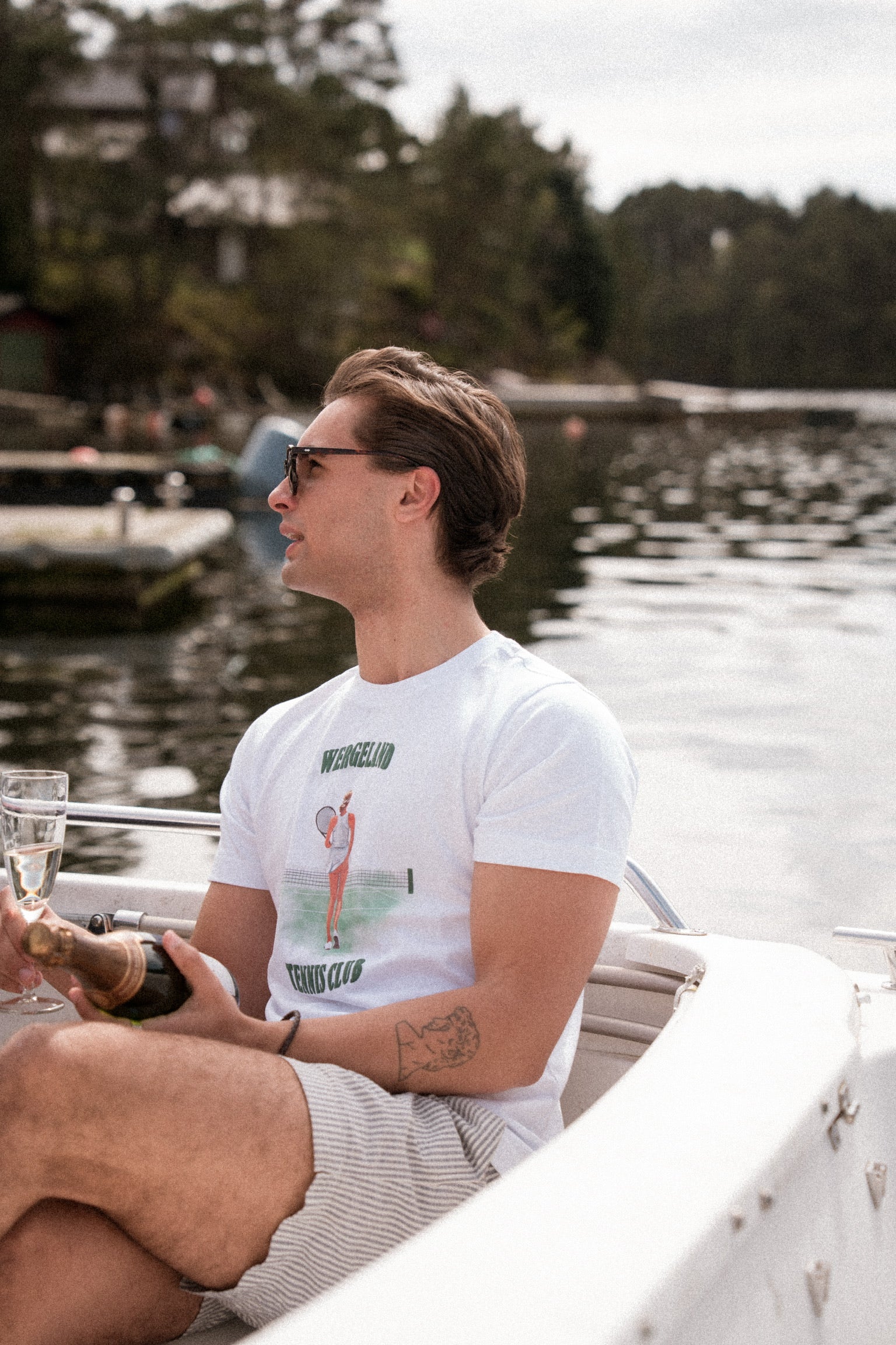 En ny klassiker fra Wergelands SS25-kolleksjon. Denne t-skjorten er laget av 100 % førsteklasses bomull og bærer det samme illustrerte motivet som vår bestselgende hoodie: en kvinnelig tennisspiller sett bakfra, midt i et serveøyeblikk på en tennisbane. Den mørkegrønne typografien – Wergeland Tennis Club – rammer inn motivet og skaper et uttrykk som kombinerer sportslig identitet med stilren nostalgi.