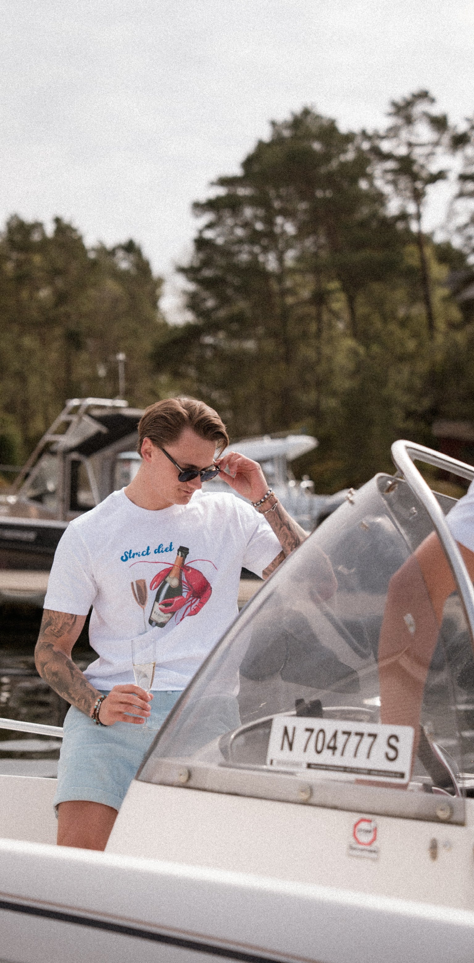En leken klassiker fra Wergelands SS25-kolleksjon. Strict Diet er laget i 100 % myk bomull, og kombinerer høy komfort med en illustrasjon som fanger essensen av sommerens enkleste luksus: hummer, champagne – og ikke minst, stil. Med sitt fargesterke vintage-inspirerte motiv balanserer t-skjorten mellom ironi og raffinement, perfekt for både skjærgårdsbord og sene kvelder ved sjøen.